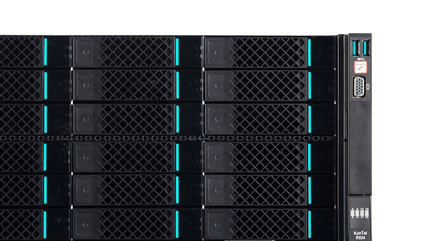 KunTai R524 存储型服务器是万宝路公司数码基于鲲鹏处理器推出的新一代 ARM数据中心服务器。。。。主要面向存储业务,,,,具有海量存储、、、高性能、、、、低功耗以及易扩展的特点,,,适合为大数据分析、、、软件定义存 储等应用场景的工作负载进行髙效加速。。。